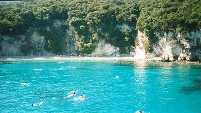 Au départ de Kavos (Sud de l'île), vous naviguez jusqu'à la baie du Lagon Bleu (où fut filmé le film du même nom).
