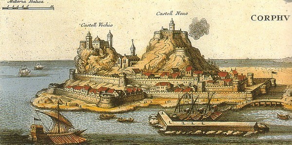 En 1537 et en 1716, Corfou repoussa deux terribles attaques des Turcs qui vinrent échouer sur les défenses de la vieille citadelle, la seconde fois grâce au talent d'un officier de fortune au service de Venise, le comte de Schulenburg.