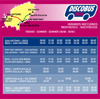de 07.30 a 10.00 cada 30 min, de 09.45 a 21.30 cada 15 min de 22.00 a 00.00 cada 30 min. y de 00.30 a 06.630 cada hora (Discobus) |