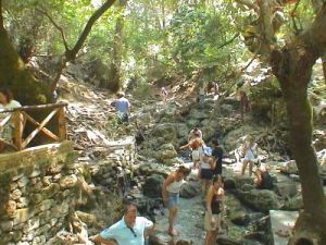 On fait de jolies randonnées parmi les ponts de bois, les petites cascades, les étangs et entre eux un long tunnel de 186 m dans lequel coule l'eau...
