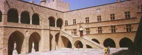 Le palais est la reconstruction de celui édifié par Hélion de Villeneuve sur le site même d'un ancien temple dédié à Hélios, dieu du soleil.