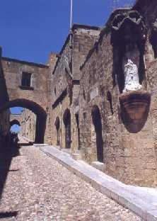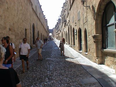 plus belle rue pavée médiévale descend de la place du palais des Grands Maîtres jusqu'à l'église Sainte-Marie-du-Château, à l'angle de la place du Musée.
